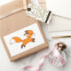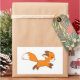 Um pequeno kit de raposa de desenho animado com orelhas grandes e cauda arbustiva está correndo rápido.