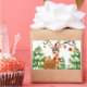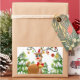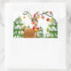 Reindeer Bonito na Neve com árvores e ornamentos pendurados em suas galhadas