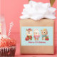 Os palitos com uma ilustração fofinha, com um coelho, um urso e um veado, todos vestidos com artes festivas. Adorável e caprichoso.
