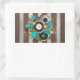 Adesivo Retangular Relógio e Rosas de Turquesa em Striping