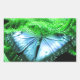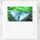 Adesivo Retangular Respiração Tomando Borboleta Azul Iridescente