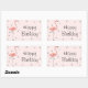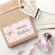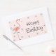 Adesivo Retangular retângulo de aniversário feliz com Flamingo rosa