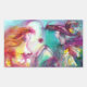 Cena de ROMEU E JULIETA tragédia de William Shakespeare .Pintura original contemporânea em aquarela com folha dourada e cores iridescentes em roxo brilhante , rosa, verde, laranja amarelo , azul turquesa, turquesa, branco ..Pintura de Bulgan Lumini (c)