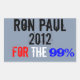 Adesivo Retangular Ron Paul 2012, Para Os 99%