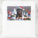 Adesivo Retangular Rottweiler correndo em neve com chapéu de Natal