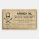 Etiqueta antiquada de veneno de arsênico sobre fundo de textura de burlap