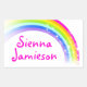 Certifique-se de que o seu filho não perder os seus bens ao embelezar livros, bolsas, garrafas e brinquedos com este simples autocolante personalizado. Brilhante e colorido faz a brincadeira da criança identificar todos os pertences dos seus filhos. Personalize com seu nome de cheio. Este exemplo diz "Sienna Jamieson". Gráfico desenhado por Sarah Trett.