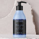 Este elegante rótulo de produto para garrafas cosméticas apresenta um fundo preto com uma borda azul escura de folha fina. Esta etiqueta contém espaço para o nome do seu produto, nome comercial, peso do produto, ingredientes, instruções, mídia social e endereço comercial.