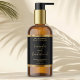 Este elegante rótulo de produto para garrafas cosméticas apresenta um fundo preto com uma borda falsa de folha de ouro. Esta etiqueta contém espaço para o nome do seu produto, nome comercial, peso do produto, ingredientes, instruções, mídia social e endereço comercial. Este rótulo mede 4,5 polegadas por 2,7 polegadas e está disponível em acabamento brilhante ou fosco.