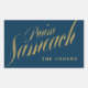 Elegante, etiqueta elegante em azul e ouro para rotular seu manto de malabarismo em Purim.