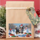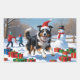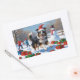 Adesivo Retangular Rough Collie correndo em neve com chapéu de Natal