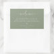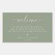 Minimalista Sage Green, etiqueta de boas-vindas de convidado de casamento. O modelo fornece linhas para a sua mensagem, nomes e data do evento.
