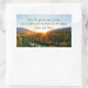 Um adesivo de aspas inspirador mostra um belo pôr do sol do outono sobre as montanhas. Apresenta a Bíblia Verse Psalm 72:19, "Louve o seu glorioso nome para sempre! Que toda a Terra esteja cheia de Sua Glória. Amém"