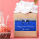 Bonito azul real e prata em qualquer adesivo de aniversário com uma imagem gráfica plana de sequências de prata e arco azul real com texto branco.