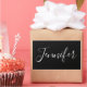 Adesivo Retangular Seu nome | Script branco elegante em preto
