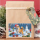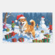 Adesivo Retangular Shiba Inu correndo em neve com chapéu de Natal