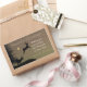 Linda imagem da silhueta de uma rena saltando em um céu luonado enquanto um veado assiste a partir da borda da montanha. Esses adesivos exclusivos com saudações de Natal são uma alternativo ideal para etiquetas de presentes para adicionar aos presentes de Natal. Personalize com seu próprio texto.