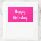 Adesivo Retangular Simples Feliz Aniversário Rosa Quente