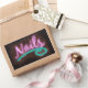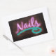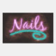 Unhas neonatais em uma parede de tijolos, perfeita para adição de talento e decoração em qualquer salão de cabelo e prego.