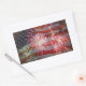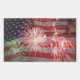 Explosão de fogos de artifício em fundo de bandeira. Imagem do Dia da Independência do 4º de julho.