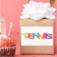 Slogan de tênis com Vinheta Retangular com tipografia colorida do arco-íris.