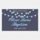 A CORDA ILUMINA OS PEDAÇOS RETANGULARES BAPTISMO AZUIS. Este batismo bonito, rústico, batizando ou primeiro adesivo de comunhão apresenta luzes de cordas azuis, e belíssima caligrafia branca com sombra azul. Personalize com seu próprio nome, data e mensagem do bebê. Projetado por Piglet © Pura em www.zazzle.com/purepiglet*.
