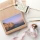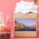 Um autocolante de fotografia retangular com o céu roxo ao pôr do sol sobre a adorável aldeia Manarola, construída sobre as rochas acima do Mar Mediterrâneo na costa da zona Cinque Terre, na Ligúria, Itália.