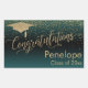 Adesivo Retangular Teal de Graduação de Confetti Dourado parabéns