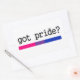 Mostre seu orgulho bissexual com este adesivo divertido. Apresentando as palavras "Tenho orgulho?" com a bandeira do orgulho bissexual embaixo.