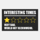 Tempos Interessantes - Muito Ruins. Não Recomendaria. Esta frase engraçada sarcástica é um acessório excelente para homens e mulheres que daria a esta década uma classificação de uma estrela. Enfrentem tempos difíceis com humor e sarcasmo. Uma maldição chinesa diz, "Que Viva em Tempos Interessantes", e muitos concordariam desta vez em ajustados de História com esta descrição. Com a guerra, a polarização política e as alterações climáticas, estes são, de fato, tempos difíceis!