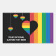 Adesivo Retangular Texto personalizado Corações e faixas do arco-íris
