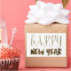 Texto Elegante do feliz ano novo Típica de aparência Dourada Dourada e adesivos brancos, você pode mudar a cor de fundo branca