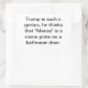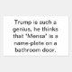 Trump is such a genius, he thinks that "Mensa" is a name-plate on a bathroom door. Comic Conscious-Social-Commentary Splash-art sticker-design by Jeff Hankamer at Artjunkhaus