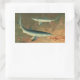Adesivo Retangular Tubarões Azuis Comendo Peixes, Vida Marinha Antiga