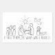 Um esboço bonito da natividade com o texto "Uma emoção de esperança, o mundo cansado se regozija".