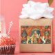 A Senhora e o unicórnio, uma tapeçaria medieval por volta de 1500, é um de um conjunto de tapeçarias francesas, consideradas obras de arte excelente da Idade Média. Esta Dama e a tapeçaria do Unicórnio é uma imagem impressionante de uma senhora em uma tenda, com um unicórnio de um lado dela, e um leão do outro. Há um pequeno cachorro branco sentado em um banco ao lado dela, e uma donzela no outro lado. O fundo da tapeçaria é um campo vermelho de flores e animais, incluindo cães, coelhos e aves. A tapeçaria original medieval do Unicórnio estava bastante danificada e perdeu muito de sua cor e qualidade brilhantes originais. Enquanto pudemos restaurar algumas das colorações originais da tapeçaria vermelha e azul da Unicórn, por favor, saibam que ainda há imperfeições na imagem. No entanto, o nosso é uma versão única desta tapeçaria medieval, à medida que a alargámos e a aperfeiçoámos para trazer à tona a sua beleza original.