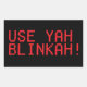 um adesivo maravilhoso para lembrar os motoristas de "USE YAH BLINKAH!"