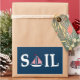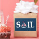 Ilustração de design de texto de vela com decoração de barco à vela em fundo azul escuro. É possível mudar a cor de fundo e adicionar uma diferente à design com sua escolha.