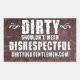 Avise o mundo sobre o que é ser membro da liga exibindo nosso lema: "Sujo não tem que significar desrespeitoso". Vinheta Retângulo Largo de 4,5 Polegadas.