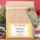 Uma etiqueta de latão ou comida personalizada com um guião retrorreflector castanho claro e escuro e letras de bloqueio num padrão de cozinha verificado de xadrez amarela e branca, com listras de laranja e verde. Este modelo tem três linhas para o seu texto personalizado, personalize-o para adicionar ou eliminar linhas, alterar fontes ou cores de fundo!
