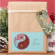 O símbolo tradicional para yin e yang é modelado com flores e espirais em tons de azul-ovo do pinto vermelho e bonito. O símbolo pode ser ampliado para encher o produto ou reduzido em tamanho para um círculo menor, dependendo da aparência que você deseja criar; um fundo azul padronizado é incluído para esta opção. Procure 'Yin Yang com Padrão' para ver outras combinações de cores.