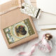 A ilustração de Ellen Clapsaddle, no início do século 20, retrata um peru maravilhoso e enquadrado. Este adesivo de vintage é um toque colorido e nostálgico perfeito para adicionar aos envelopes ou cair na página de recortes.