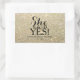 Chá de panela simples com fundo brilhante. Parte do que ele perguntou, ela disse que sim. Veja o adesivo correspondente abaixo. Altere o Fundo ou as cores do texto para se adequar à sua ocasião.