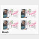 Adesivo Retangular Vinheta de Casamento Floral e Onda Rosa