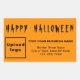 Feliz Dia das Bruxas! Um dos feriados do ano para anunciar sua empresa. A propósito, você está procurando um adesivo que você pode usar como material de marketing para anunciar sua empresa, para promover seu nome de marca para os clientes ou para usar como etiqueta de produto neste Halloween? Por favor, veja este adesivo de retângulo laranja com saudação de Halloween. Você pode gostar. A cor da fonte é preta. Personalize-o e use-o para criar reconhecimento de nome de marca. Para personalizar este adesivo, carregue o logotipo da sua empresa, digite o nome da sua empresa ou empresa, endereço e número de telefone e verifique a aparência. Se a aparência lhe agrada, você pode colocar seu pedido agora. Se você precisar redimensionar e mover o logotipo e os textos para o ajustado neste adesivo ou em outras formas e tamanhos que você escolher, mude na ferramenta design. Você também pode fazer outras alterações de acordo com sua preferência na ferramenta design, como alterar a cor do adesivo, a cor da fonte e o estilo da fonte.