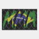 Mantenha as letras MMA feitas em uma bandeira brasileira angustiada atrás de uma cerca de elos de corrente.