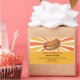 Um cachorro quente em um pão com uma mostarda está pronto para ir! Ela se senta sobre uma laranja áspera e um burst de ouro como se afirmasse a principal especialidade do negócio. Excelente para um assento de cachorro quente ou um lugar de comida rápido. Disponível em cores alternativas com produtos correspondentes.