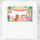 Adesivo Retangular Vinheta Retangular de Animais Feliz de Aniversário