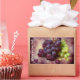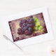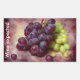 Clusters de uvas vermelhas e verdes. Gotas de água nas bagas. Fotografia texturizada, cores verdes e roxas. Impressões e presentes para diversão e bom humor. Vinheta retangular. Você pode alterar ou excluir o texto Vinho esperado.