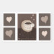 Vinhetas com um design delicioso. A palavra "café" faz a forma de uma caneca e corações flutuam em torno de ondulações de mocha, latte, cappuccino, macchiato, espresso e americano. Excelente maneira de expressar seu amor pelo café.